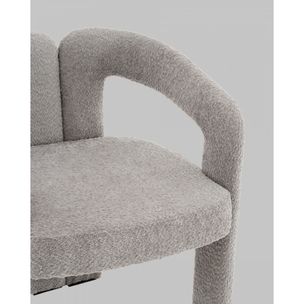 Стул Болинджер — это гармония скульптурной формы и уюта. Полностью обитый светло-серым букле, он выглядит монолитно и при этом невероятно мягко. Плавные линии спинки и подлокотников создают обволакивающий силуэт, который станет стильным акцентом в интерьере и подчеркнёт современный вкус.