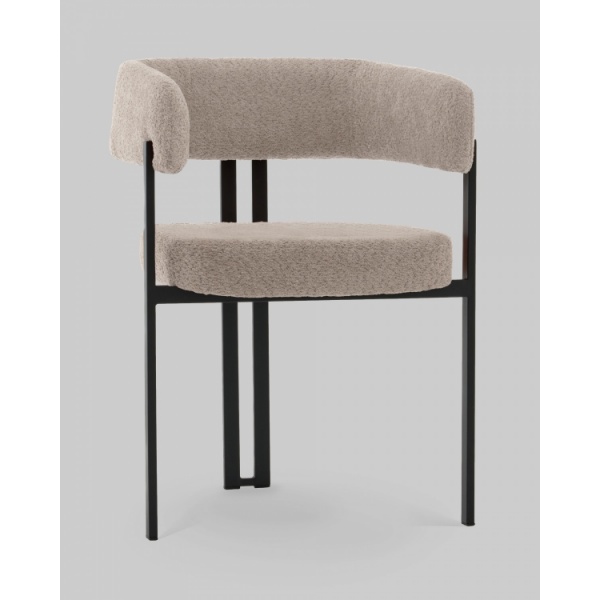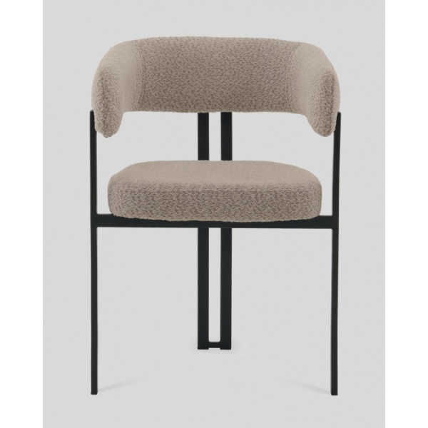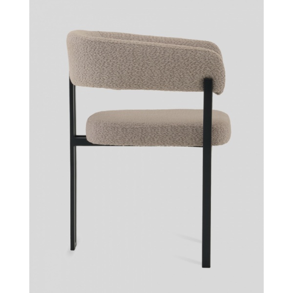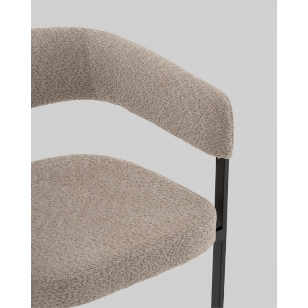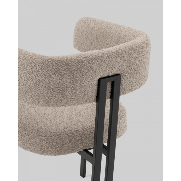 Стул для кухни Серенидат сочетает строгие линии и мягкий комфорт. Обивка из светло-серого букле придаёт изделию тактильную теплоту и современный облик, делая его стильным акцентом в интерьере. Чёрный металлический каркас подчёркивает геометрию силуэта и добавляет выразительности, создавая гармоничный контраст.