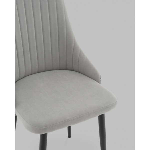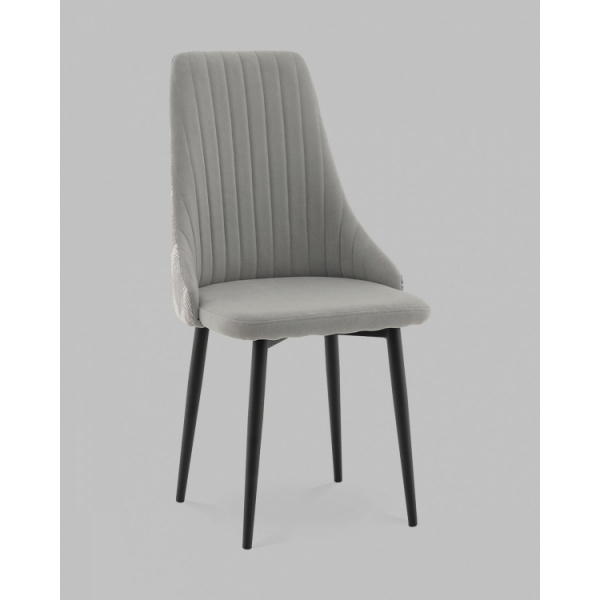 Стул Касаденика сочетает лаконичные формы и уютный велюр, придавая интерьеру спокойный и стильный характер. Обивка передней части выполнена из мягкого серого велюра с вертикальной простёжкой, визуально удлиняющей спинку и подчёркивающей элегантность силуэта.