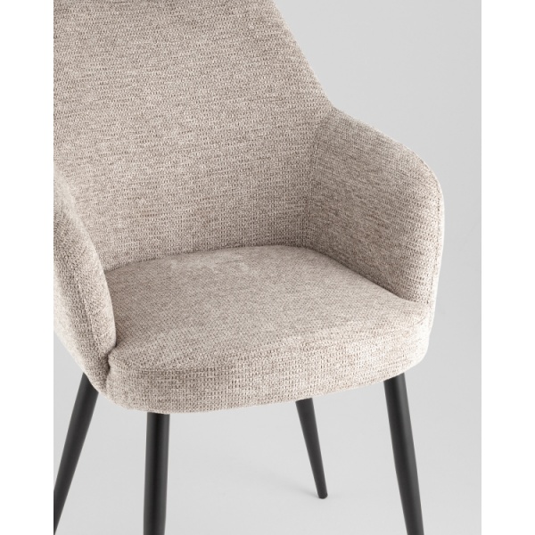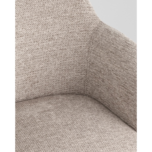 Обеденный стул Katys — это удачное сочетание изящных форм и комфорта. Его современный силуэт с округлой спинкой и подлокотниками обеспечивает удобную посадку, а выразительная текстура ткани "ёлочка" добавляет интерьеру индивидуальности. Модель смотрится эффектно как самостоятельно, так и в составе обеденной группы.